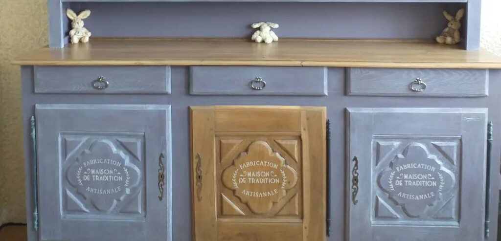 Quand j’ai acheté ce vaisselier, il servait de « cabane » pour chats. Il était massif, sombre, un peu triste et surtout